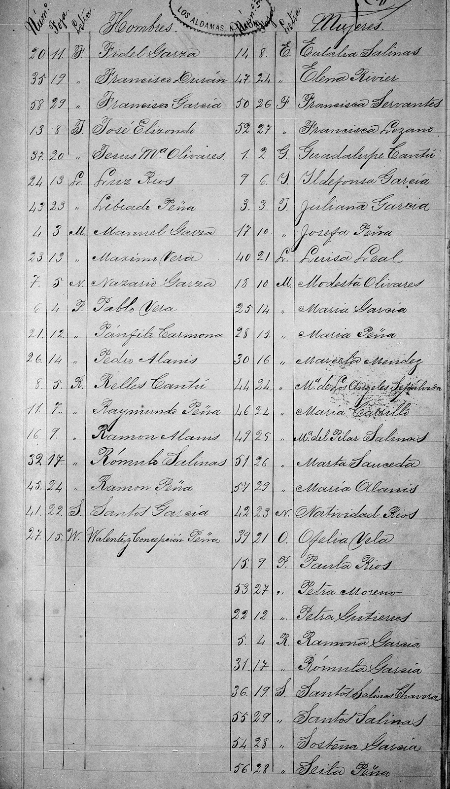 7 5 N Nazario Garza 18 10 M Modesta Olivares