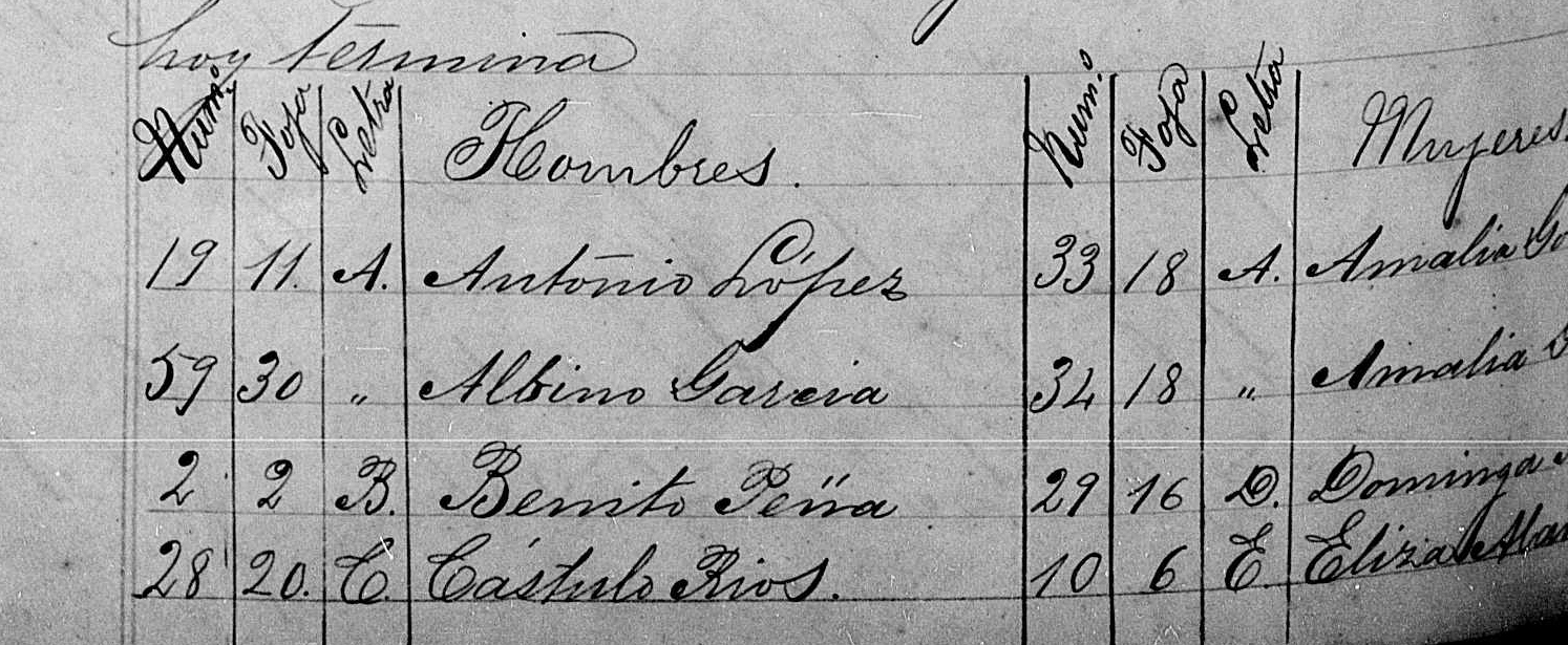 59 30 Albino Garcia 34 18 Amalia G