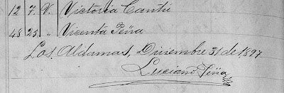 1897 Birth Index of Los Aldamas Nuevo Leon Mexico in lists by male and female and in alfabetical order.