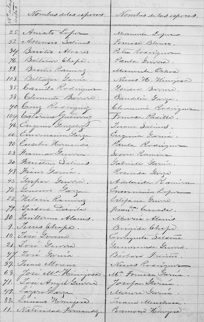 1897 Index of Marriages for Mier Tamaulipas, Mexico in alphabetical order by grooms last name.