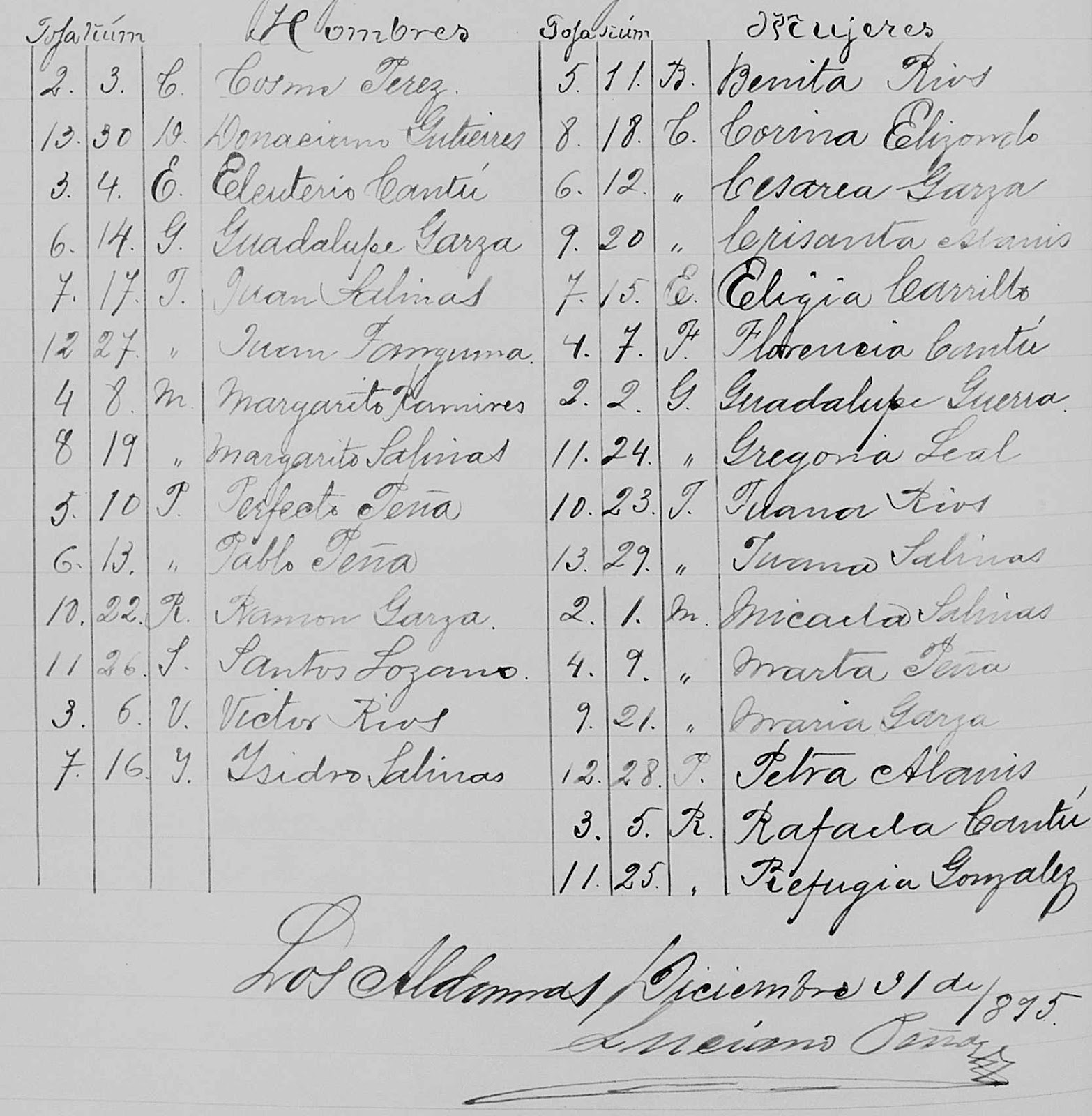 Los Aldamas Diciembre 31 de 1895