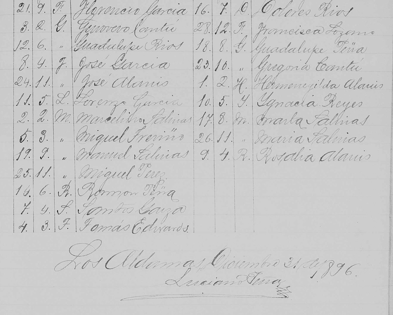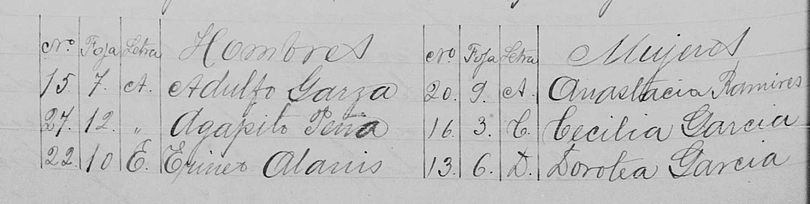 11 5 L Lorenso Garcia 10 5 Y Ygnacia Reyes
