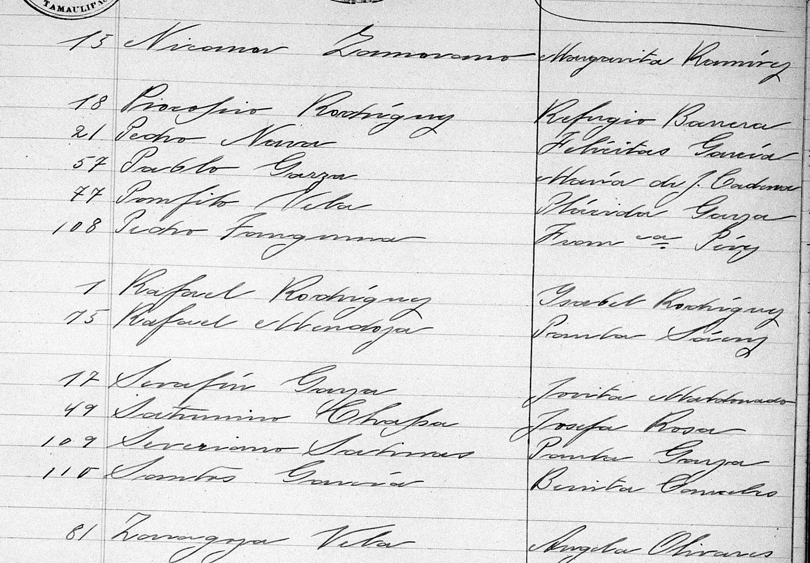 1907 Index to Marriages of Mier, Tamaulipas, Mexico.