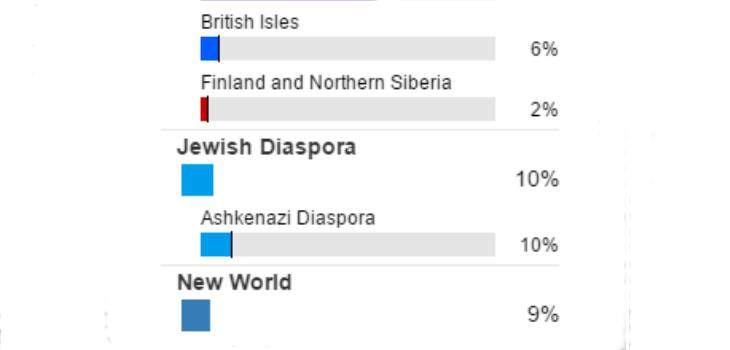 This is a summary of reported percentage of Ashkenazi DNA: